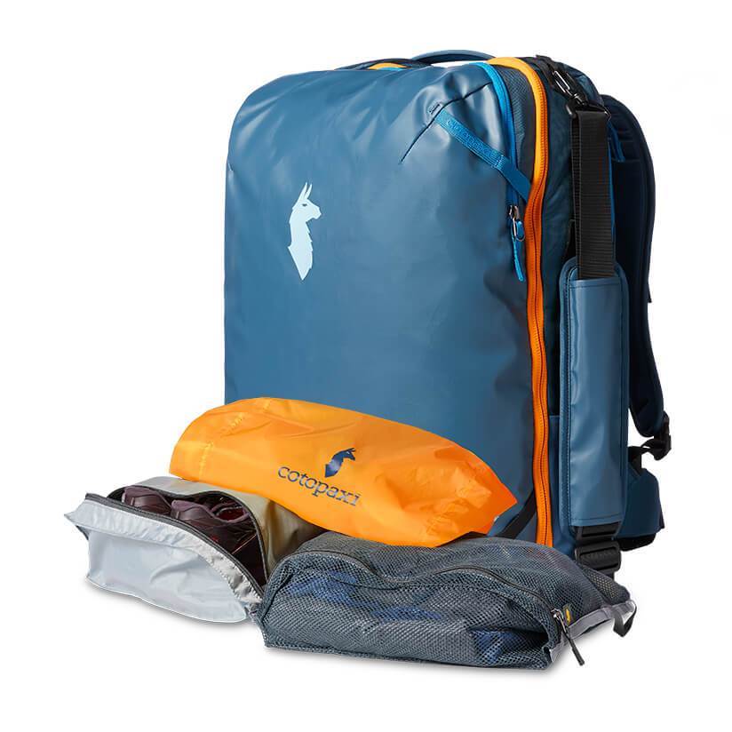The pack features a suitcase style, zippered opening and inside, we divvied up the Allpa with various sizes of zippered mesh pockets to keep clothing, travel documents, toiletries, and other essentials neatly organized when you’re in transit. We also added a padded sleeve for your laptop or tablet, a top zip pocket for quick-grab items, and an exterior shortcut pocket that provides access to the main compartment when you don’t want to fully open the bag. Four reinforced handles let you grab, pull, and pitch from any angle, and the pack’s carabiner lash points let you strap on extra gear.