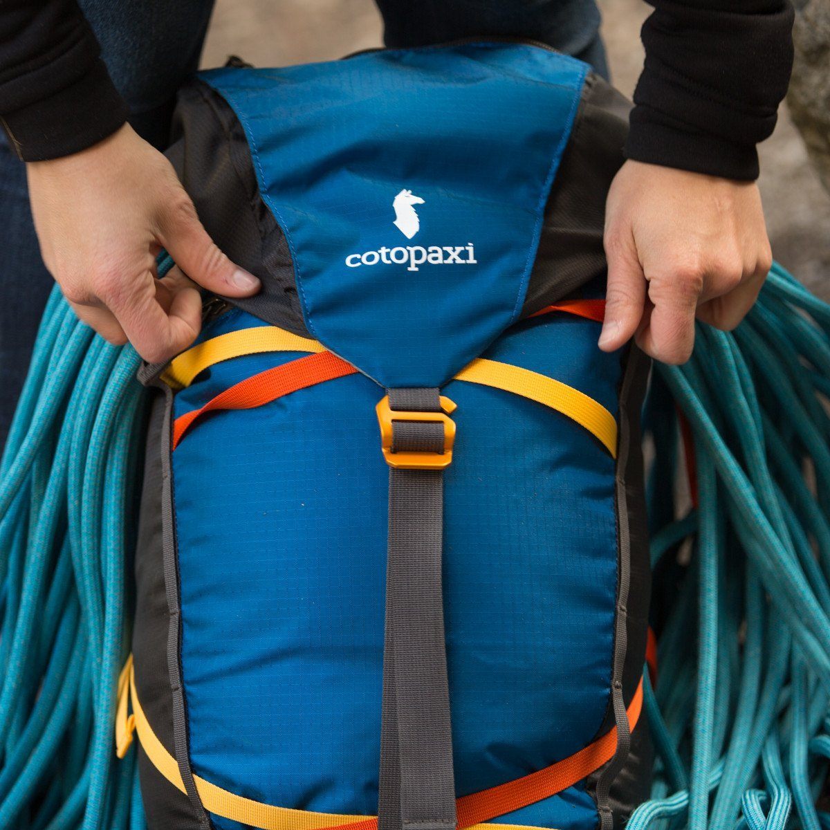 We designed the Tarak primarily for multi-pitch lead climbing and backcountry skiing, allowing you to efficiently organize and streamline the gear you depend on. The beauty of the pack’s design comes courtesy of its no-frills, purpose-driven features, each added with the core climber and skier in mind. The innovative ice tool system is the perfect example of this, which consists of a durable “bucket” of fabric at the bottom and securing straps at the top. That’s it. This eliminates unnecessary toggles and loops, making the system simple to operate while in the elements, even while wearing gloves. On the back of the pack, there are configurable compression and lash points, giving you further options for arranging your gear. A zippered top lid lets you access small essentials, and it doubles as an additional lash point for a climbing rope. A hydration sleeve, low profile shoulder straps, and a removable waist belt make the Tarak perfectly suited for backcountry skiing and day hiking as well. The pack is available in both standard and one-of-a-kind Del Día colorways.